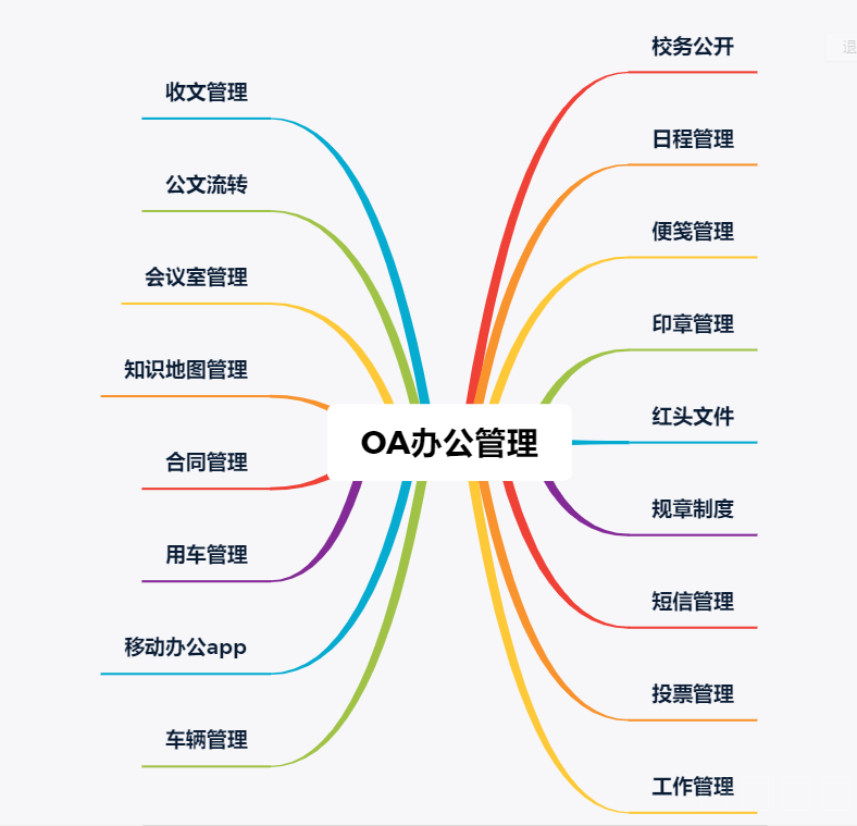 OA管理系統(tǒng)整個系統(tǒng)包含了眾多的模塊:校務(wù)公開、日程管理、便箋管理、車輛管理、用車管理、合同管理、知識地圖、會議室管理、公文流程設(shè)置、發(fā)文管理、收文管理、印章管理、規(guī)章制度、短信管理、投票管理、工作管理、自定義表單等模塊。